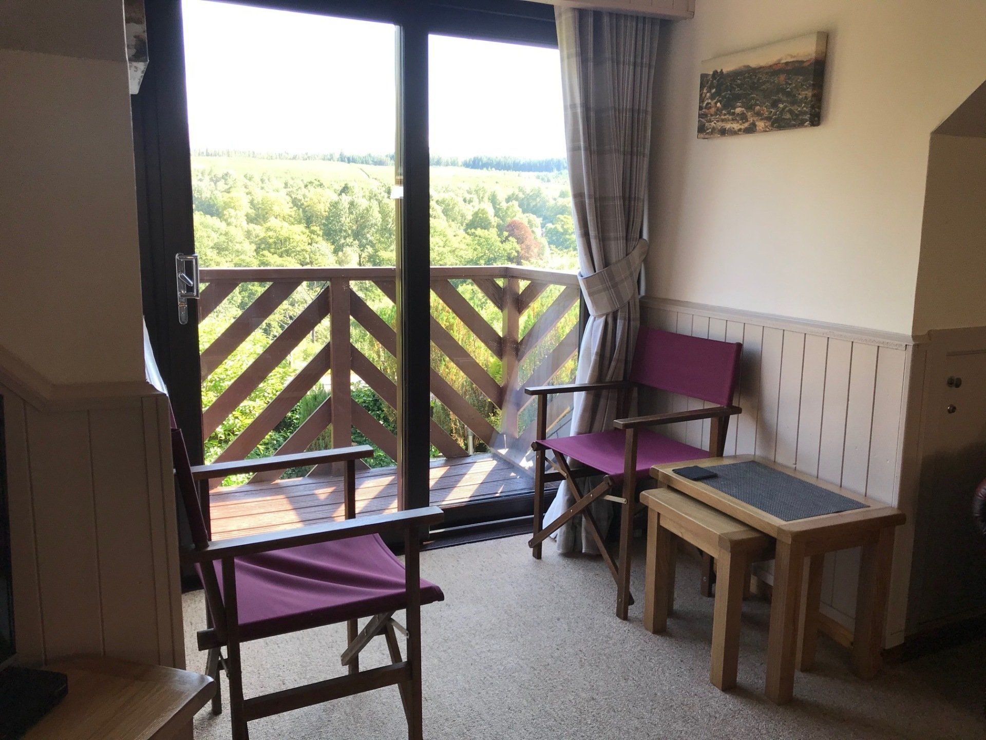 Each lodge sleeps up to five people (4 adults or a family of 5) and has two bedrooms and a bathroom, with bath and shower, on the ground floor and an upstairs living area with balcony. The Upstairs Lounges are cosy and well equipped with comfy leather sofas, They have Satellite TV, and Bluetooth speakers in addition to free Wi-Fi access. Patio doors lead to a small wooden balcony with views across the glen to the Nevis Mountain Range. The dining area is bright and airy and it is furnished with table and chairs. The kitchens are fully fitted and equipped. The cooker has a Double Fan Oven with Ceramic Hob. There is also a Microwave in addition to a full range of Pots, Pans, Crockery and Cutlery. The lodges are also equipped with a Washing Machine and Tumble Drier. The Master Bedroom has a King Size pine bed and Vanity Unit with sink. There is ample storage with built in Double Wardrobe, Dressing Table with Drawers and a Five Drawer Chest. The second bedroom also has a Vanity Unit with sink, built in Double Wardrobe and Five Drawer Chest. The second bedroom in Lodge 1 has 3 single beds to accommodate a family of 5